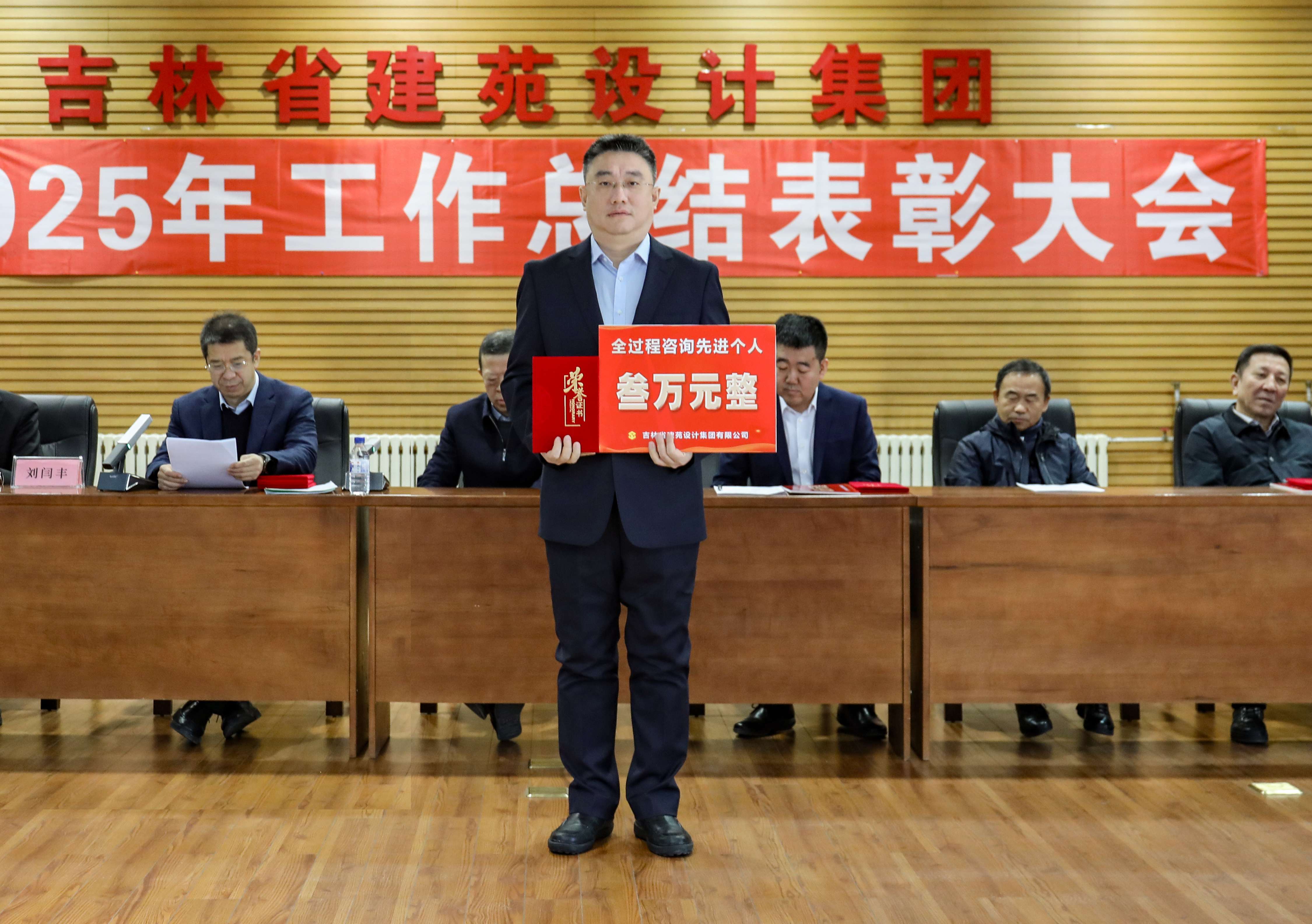 董事长深刻阐述了"读懂'来时路'、走好'未来路'"的核心要义。他带领全体员工深情回顾了集团自1956年成立以来的发展历程,从"城市建设部长春民用建筑设计院"到如今的"吉林省建苑设计集团有限公司",集团经历了计划经济体制下的国有事业单位、事业单位企业化管理、改企建制和转型发展四个阶段。70年来,一代代建院人创造了以"长春地质宫"、"吉林省南湖宾馆"为代表的众多经典作品。特别是近十年来,集团践行创新发展战略,构建"设计+综合咨询服务"双轮驱动模式,完成了以“长白山山水林田湖草综合整治”全过程工程咨询、“长春市全民健身中心游泳馆"设计牵头工程总承包为代表的一系列全过程咨询和工程总承包项目,实现了从单一技术管理向全链条综合管控的质的飞跃。