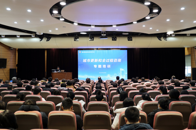 培训启幕前,郭巍副总经理作开场讲话,介绍了本次全集团培训的背景与目的。他指出,城市更新和全过程咨询已成为集团当前及未来业务的重要赛道和服务模式,是响应政策与市场变化的战略部署。本次培训旨在统一集团对行业发展的认知,提升内部协同效应,并从集团、部门、个人三层维度,阐释了开展此次培训的重要意义。