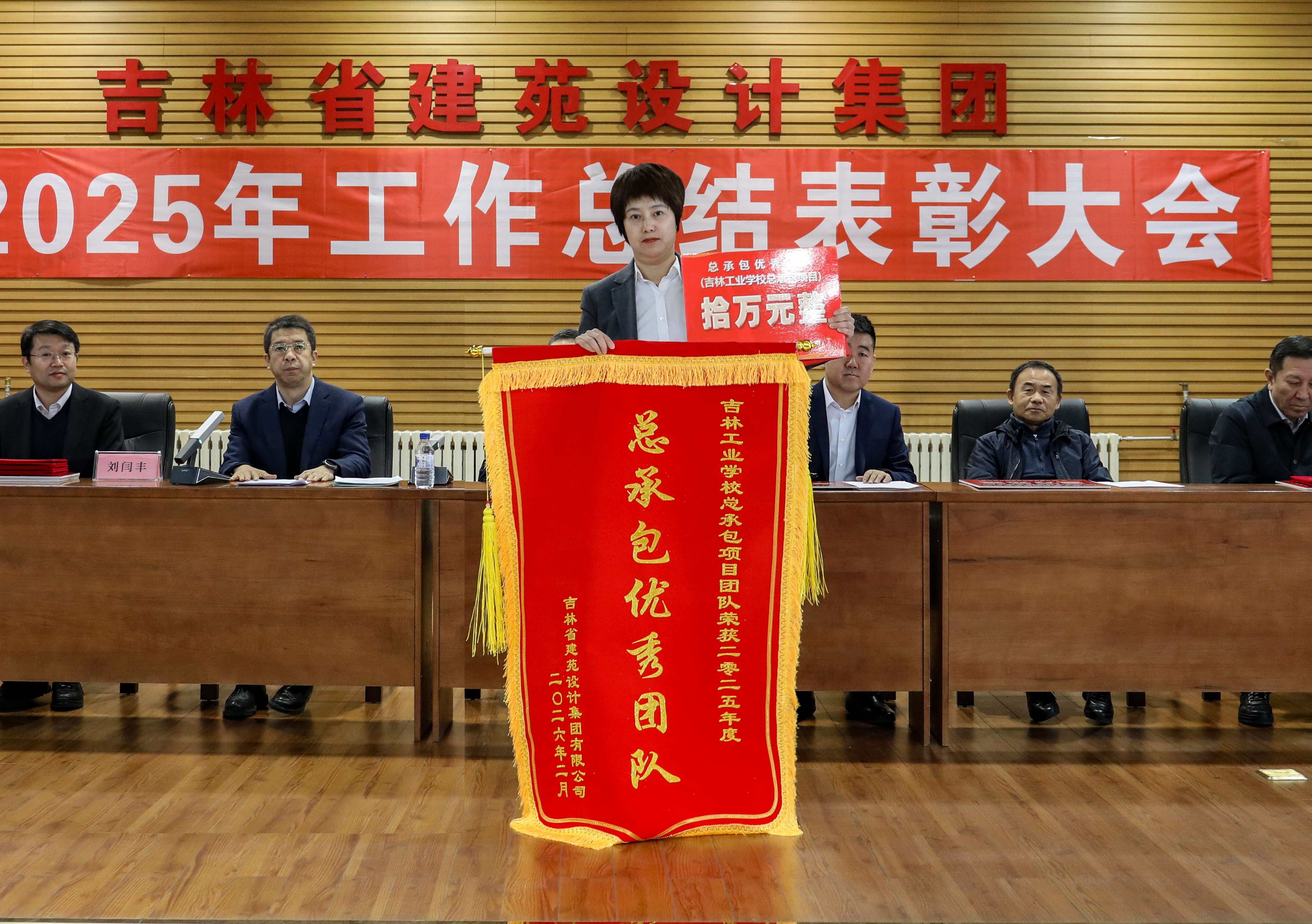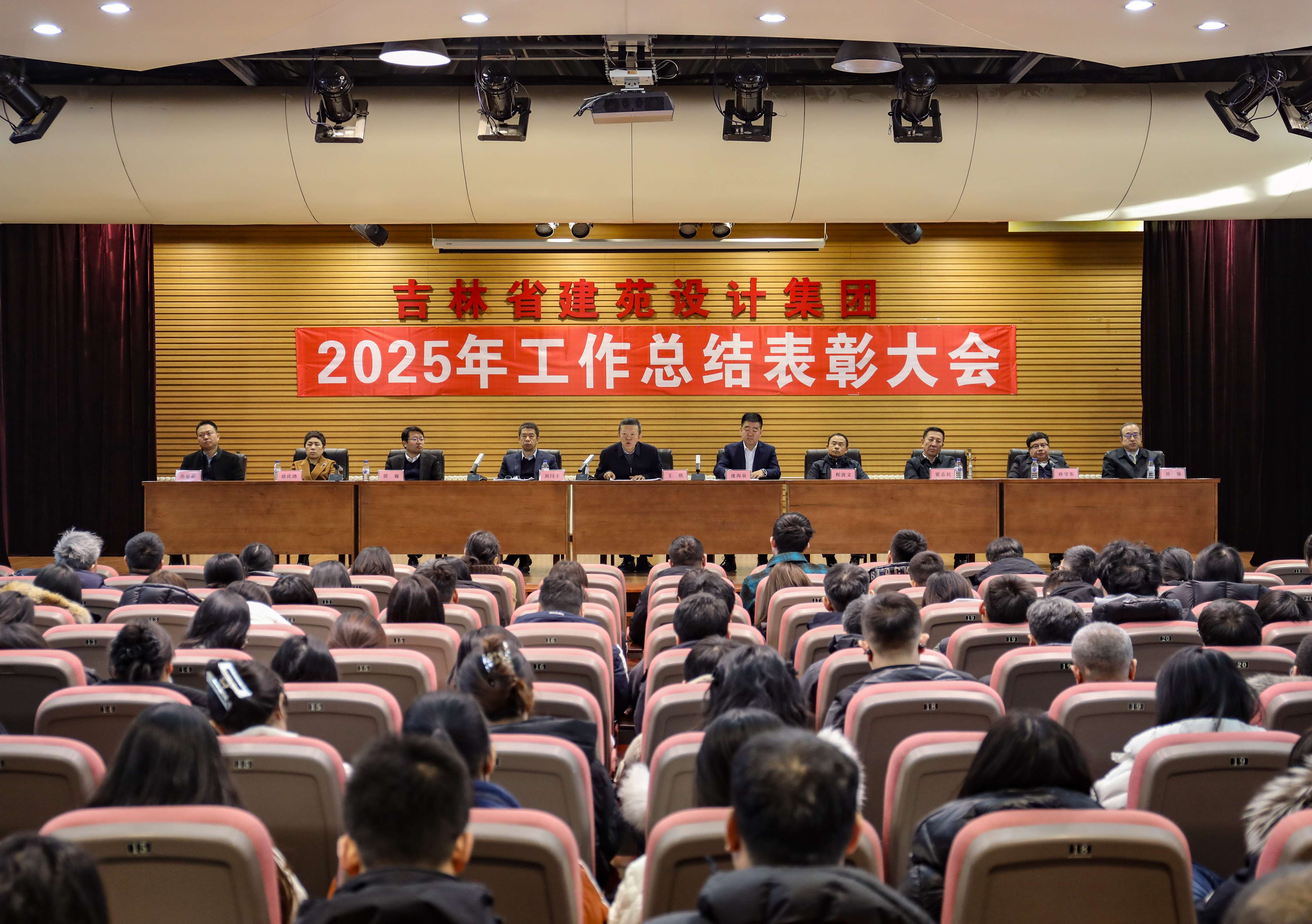 董事长深刻阐述了"读懂'来时路'、走好'未来路'"的核心要义。他带领全体员工深情回顾了集团自1956年成立以来的发展历程,从"城市建设部长春民用建筑设计院"到如今的"吉林省建苑设计集团有限公司",集团经历了计划经济体制下的国有事业单位、事业单位企业化管理、改企建制和转型发展四个阶段。70年来,一代代建院人创造了以"长春地质宫"、"吉林省南湖宾馆"为代表的众多经典作品。特别是近十年来,集团践行创新发展战略,构建"设计+综合咨询服务"双轮驱动模式,完成了以“长白山山水林田湖草综合整治”全过程工程咨询、“长春市全民健身中心游泳馆"设计牵头工程总承包为代表的一系列全过程咨询和工程总承包项目,实现了从单一技术管理向全链条综合管控的质的飞跃。